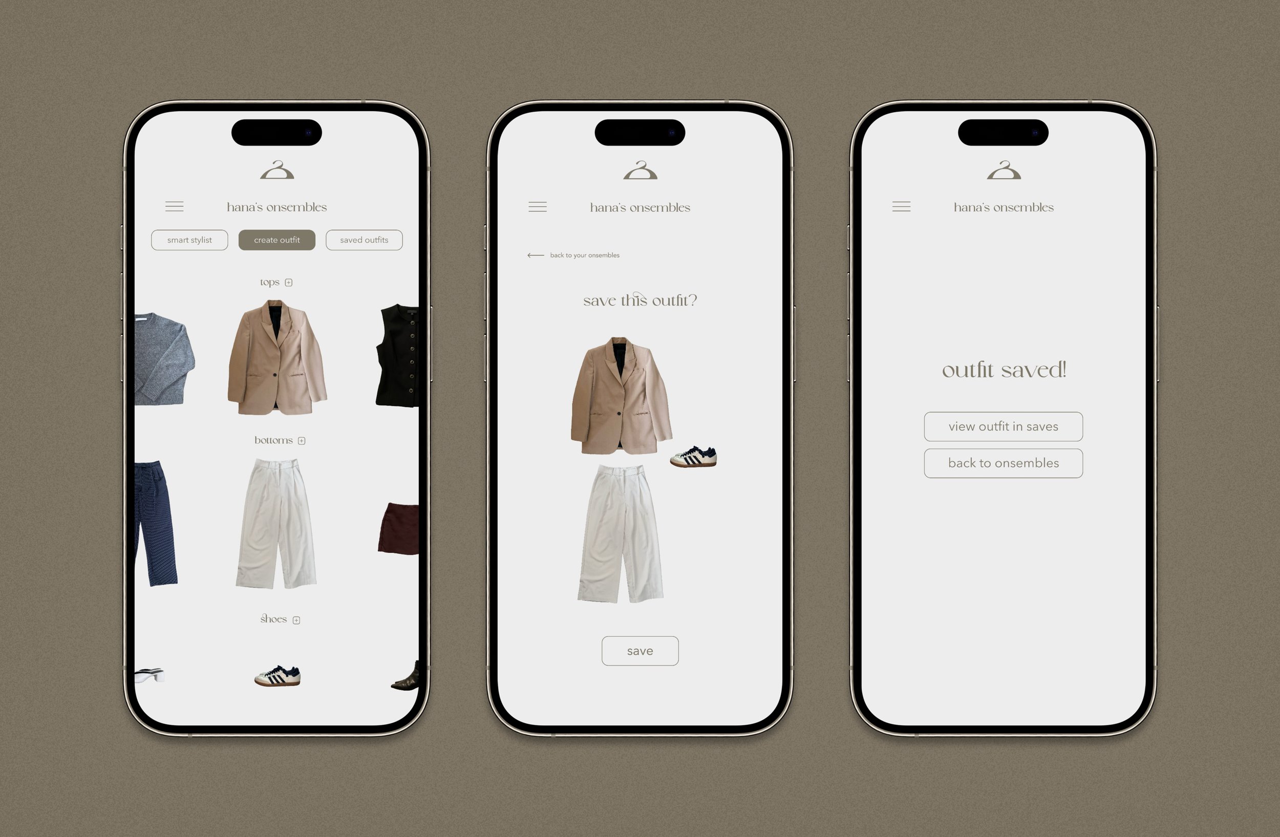 onsemble is a mobile app that is a virtual closet. The goal of onsemble is to improve the relationship between the user and their closet with assistance in styling, organization, planning, and analytics.